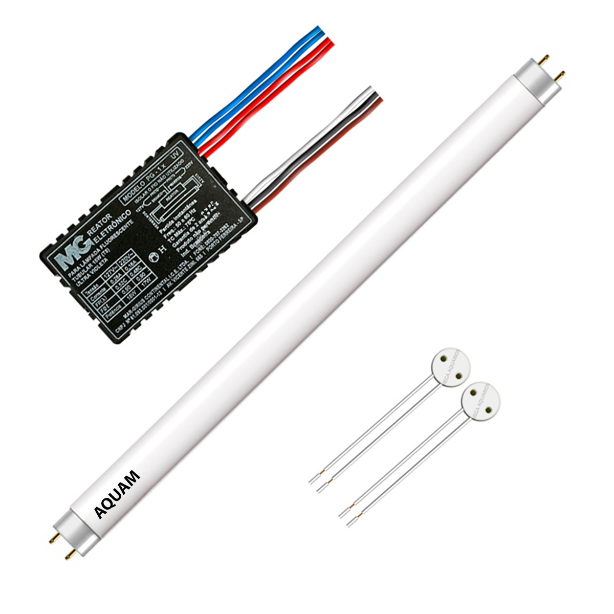 Kit lâmpada + reator + soquete - lâmpada tubular fluorescente comum branca 10W T8 – iluminação econômica e duradoura para aquários, vitrines, armários, luminárias e ambientes decorativos - 7500k – branco frio - 34,5cm