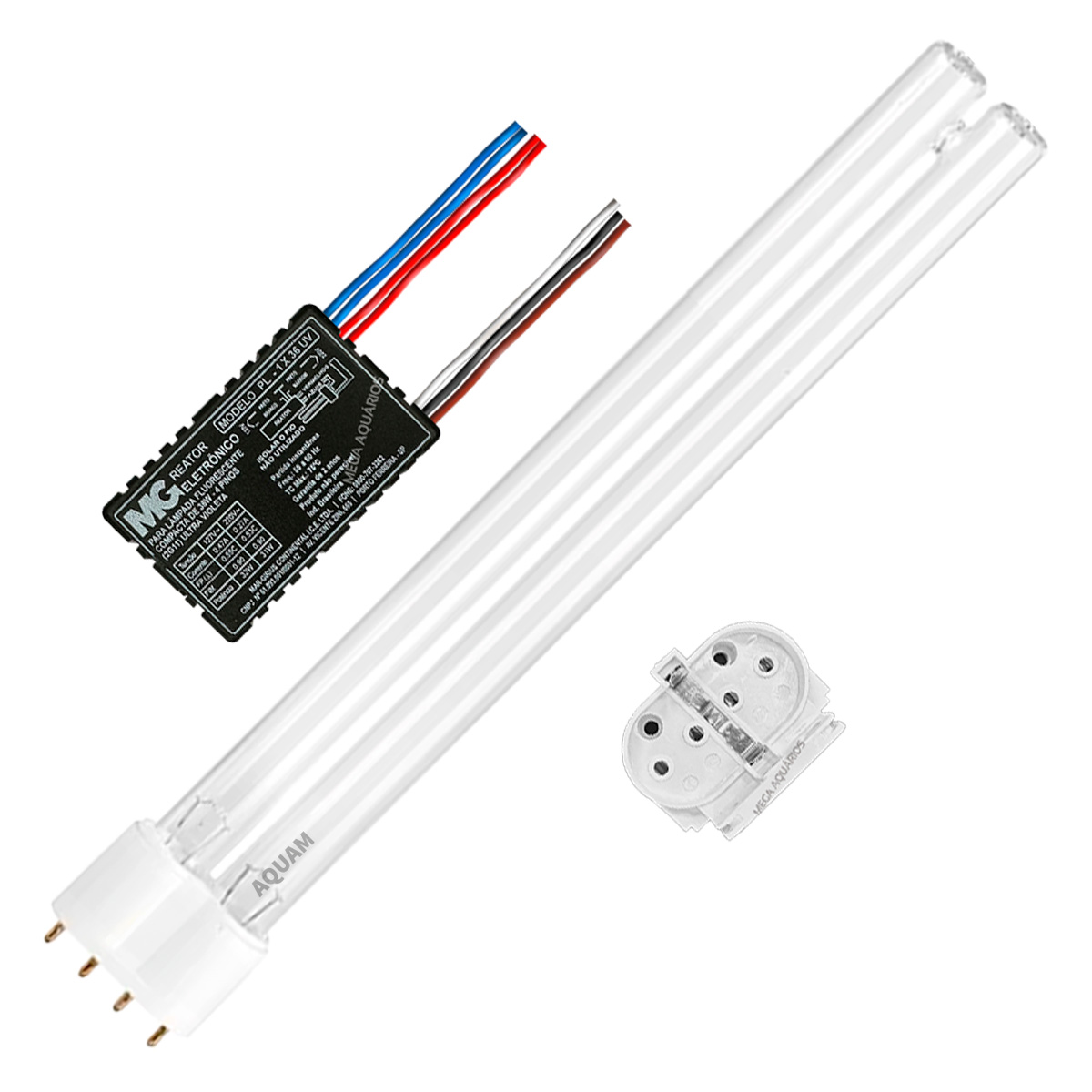 Kit lâmpada UV UV-C 36W compacta PL germicida para esterilização de ambientes e água + reator próprio para lâmpada UV + soquete