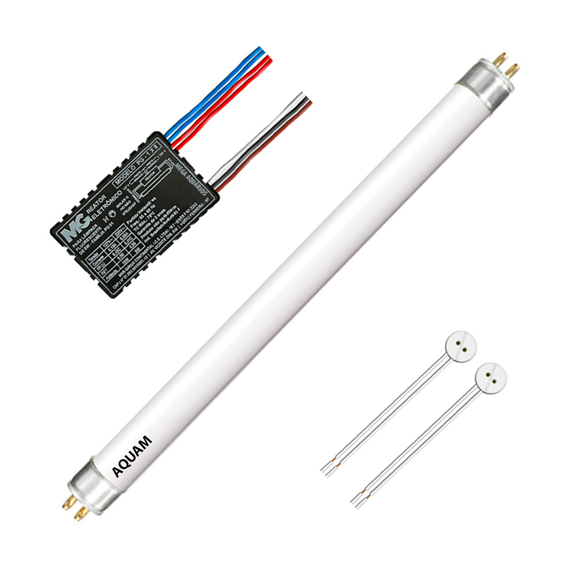 Kit lâmpada + reator + soquete - Lâmpada UV-A 6W T5 tubular fluorescente actínica para aparelhos mata mosquito, aquário marinho, análises de fluorescência, processos de secagem rápida e cura de resinas e vernizes UV
